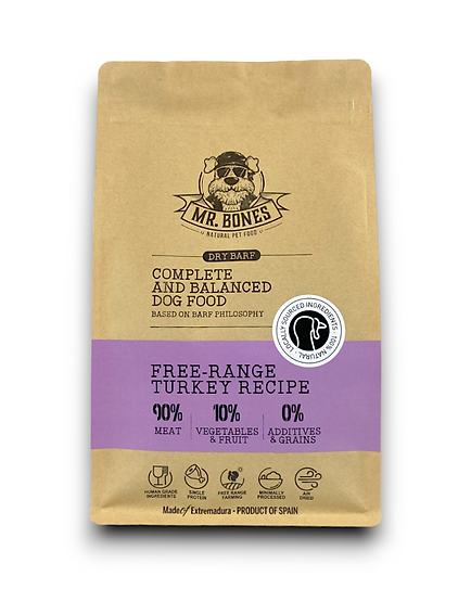 Fabricado em Espanha, este alimento baseia-se na filosofia BARF (Biologically Adequate Raw Food) e é recomendado para cães de todas as raças e idades, incluindo cachorros, juniores e lactantes.