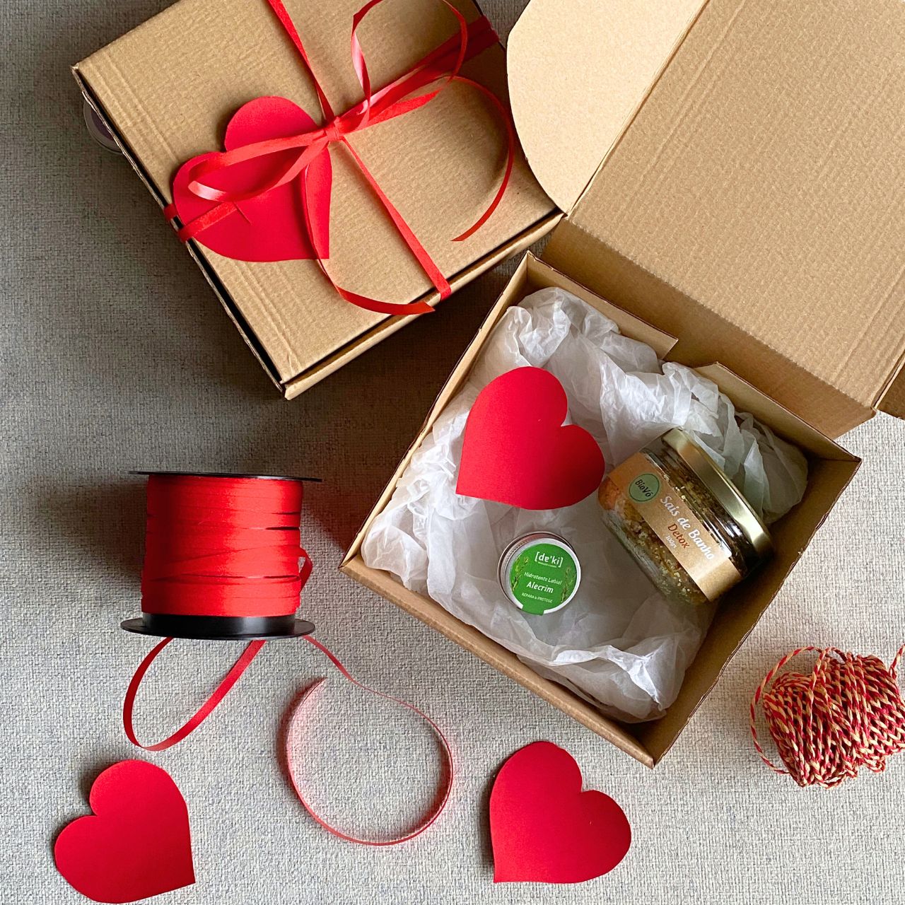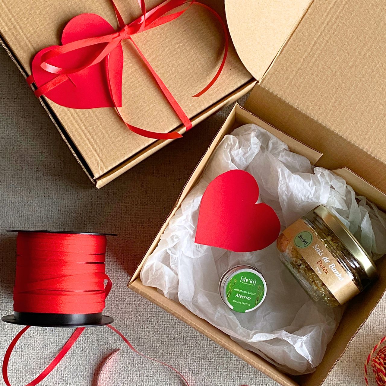 Inclui: 1 Caixa presente com laço decorativo, 1 Sais de Banho 100g (aroma Limão), 1 Bálsamo Labial 5g (aroma Alecrim) e 1 cartão em forma de coração feito à mão para mensagem especial.