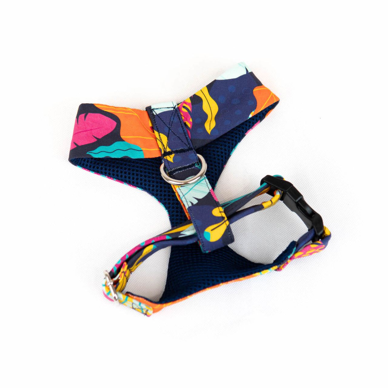 Composição: Coleiras - fitas de nylon forradas com algodão e meia-lua soldada para trela e/ou identificação. Peitoral - forro respirável de rede mesh e meia-lua soldada. Trela - meia-lua e mosquetão. Todos os artigos são feitos à mão com o mesmo padrão de tecido colorido, para que passeie o seu gato com o estilo que ele merece.