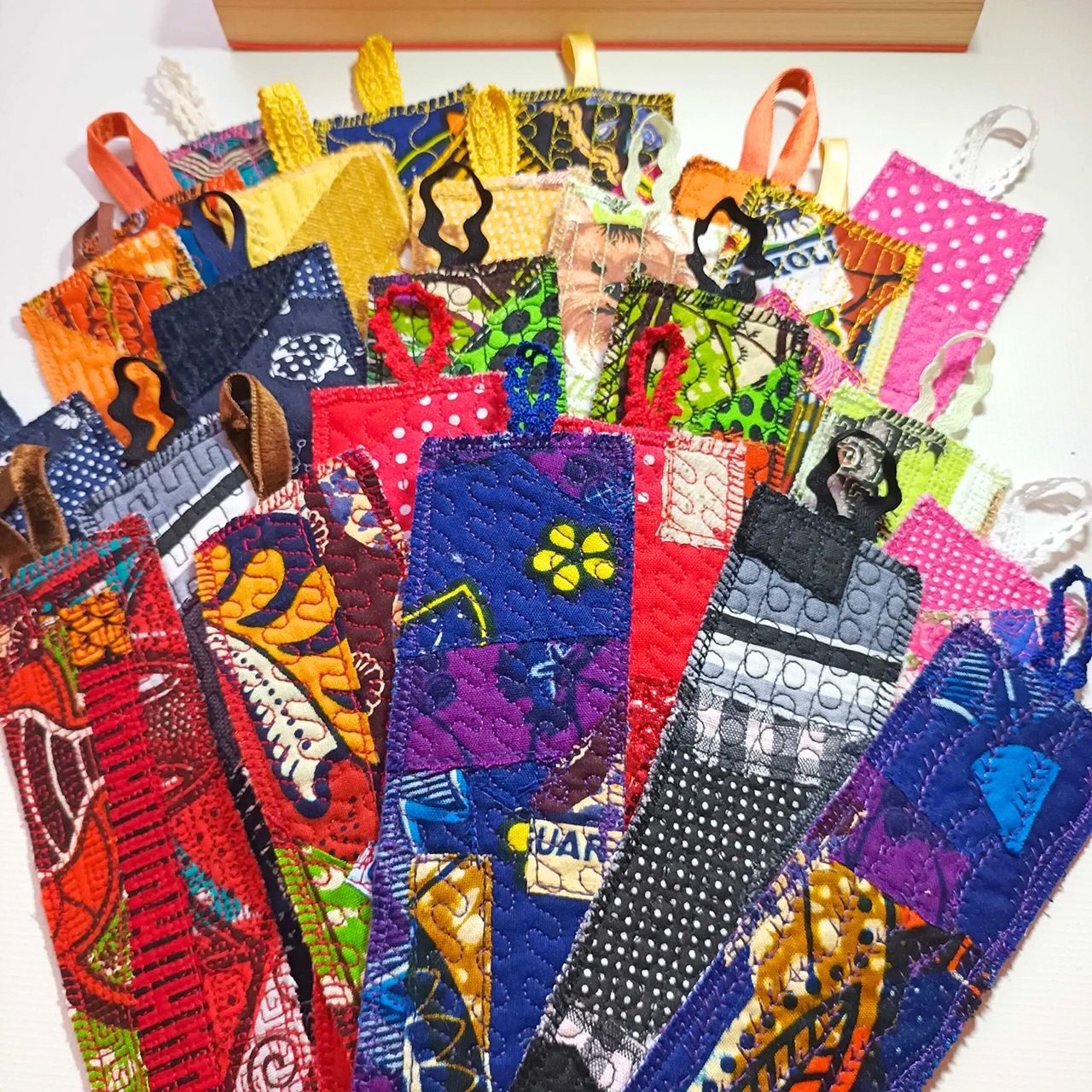 Conjuntos de marcadores para livros em tecido fabricados em Portugal em atelier artesanal.