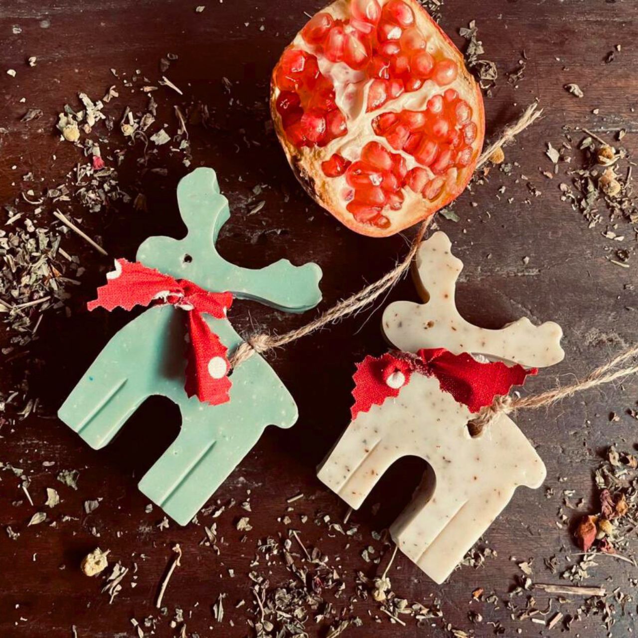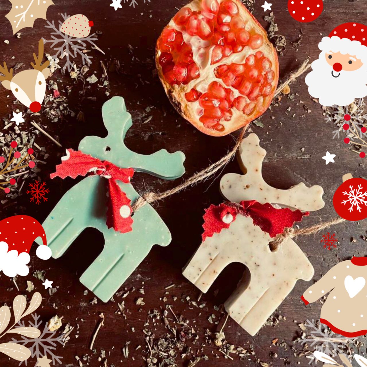 Neste Natal ofereça um presente especial ou desfrute de uma árvore de Natal aromática com estes Mini Sabões e Enfeites Rena ou Floco de Neve.