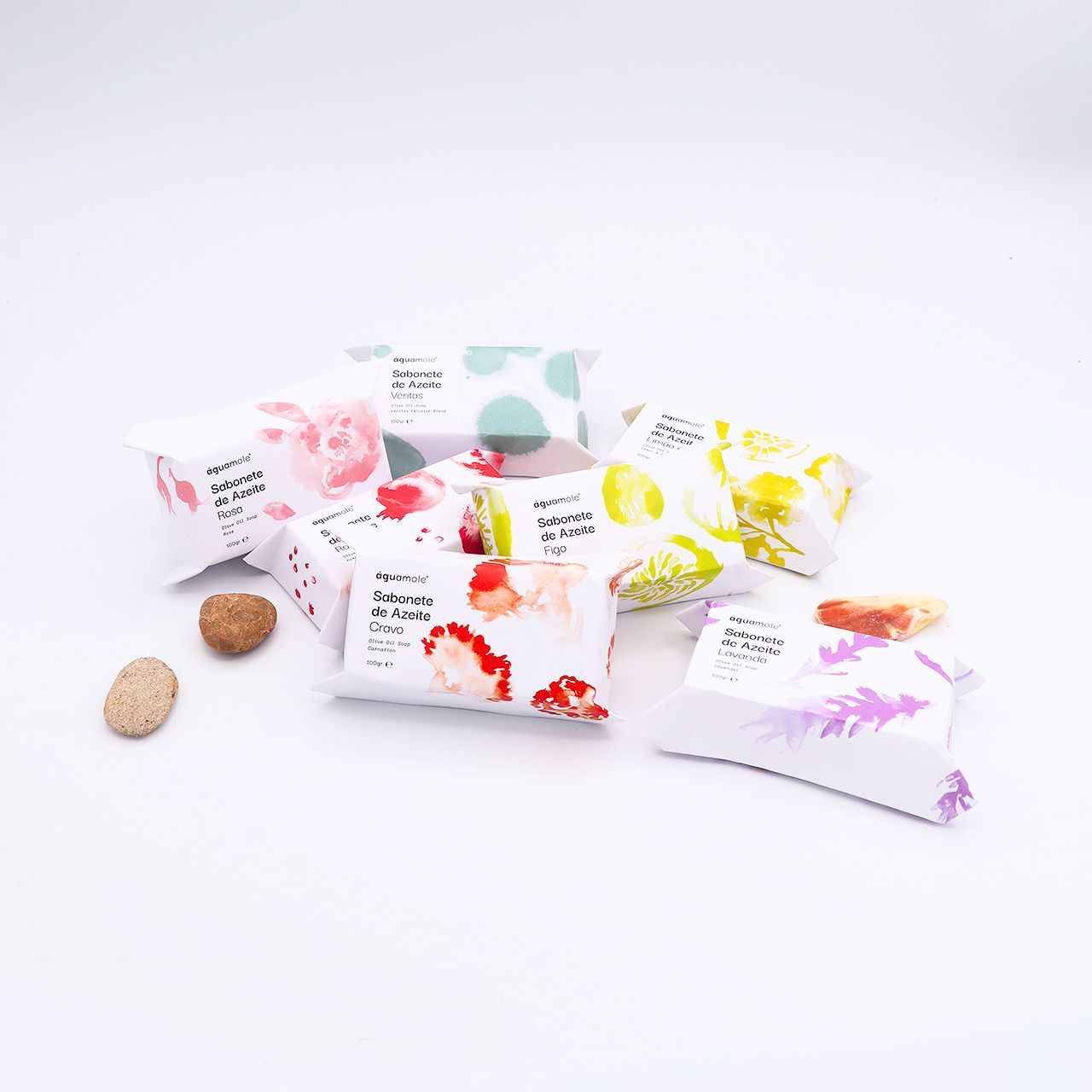 Produzidos artesanalmente em Portugal à base de azeite virgem estão disponíveis em 6 aromas florais e frutados: Cravo, Lavanda, Figo, Limão, Romã e Rosa.