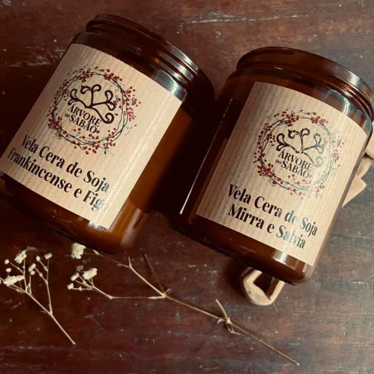 Ingredientes: cera de soja. Frankincense e Figo – óleo essencial de incenso ou olíbano (Boswelia carterii), também denominado de frankincense, essência de figo. Mirra e Sálvia – óleo essencial de mirra (Commiphora myrrha) e óleo essencial de sálvia (Salvia officinalis).
